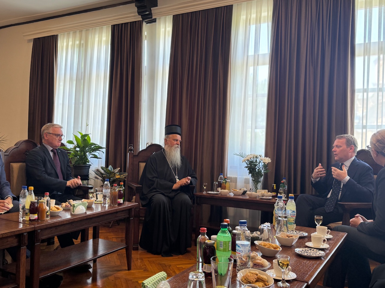 Metropolitan Teodosije expressed his gratitude to the High Commissioner for the attention and concern shown for the chalenges the Serbian Orthodox Church and its faithful people are facing in Kosovo and Metohija. He particularly emphasised that the preservation of peace, respect for human and religious rights, and the safeguarding of cultural and spiritual heritage are of essential importance for the survival of the Serbian people in Kosovo and Metohija, and that religious communities are called to be bridges of trust and cooperation.