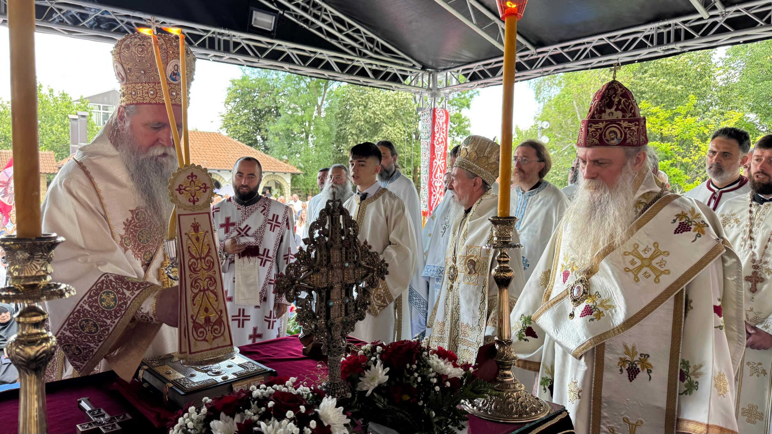 The Holy Liturgy was officiated by His Eminence Metropolitan Joanikije of Montenegro and the Littoral, with the concelebration of Metropolitan Pahomije of Vranje, Metropolitan Teodosije of Raška and Prizren, Bishop Jovan of Slavonia, and Bishop Petar of Toplica, Vicar of His Holiness Serbian Patriarch Porfirije.