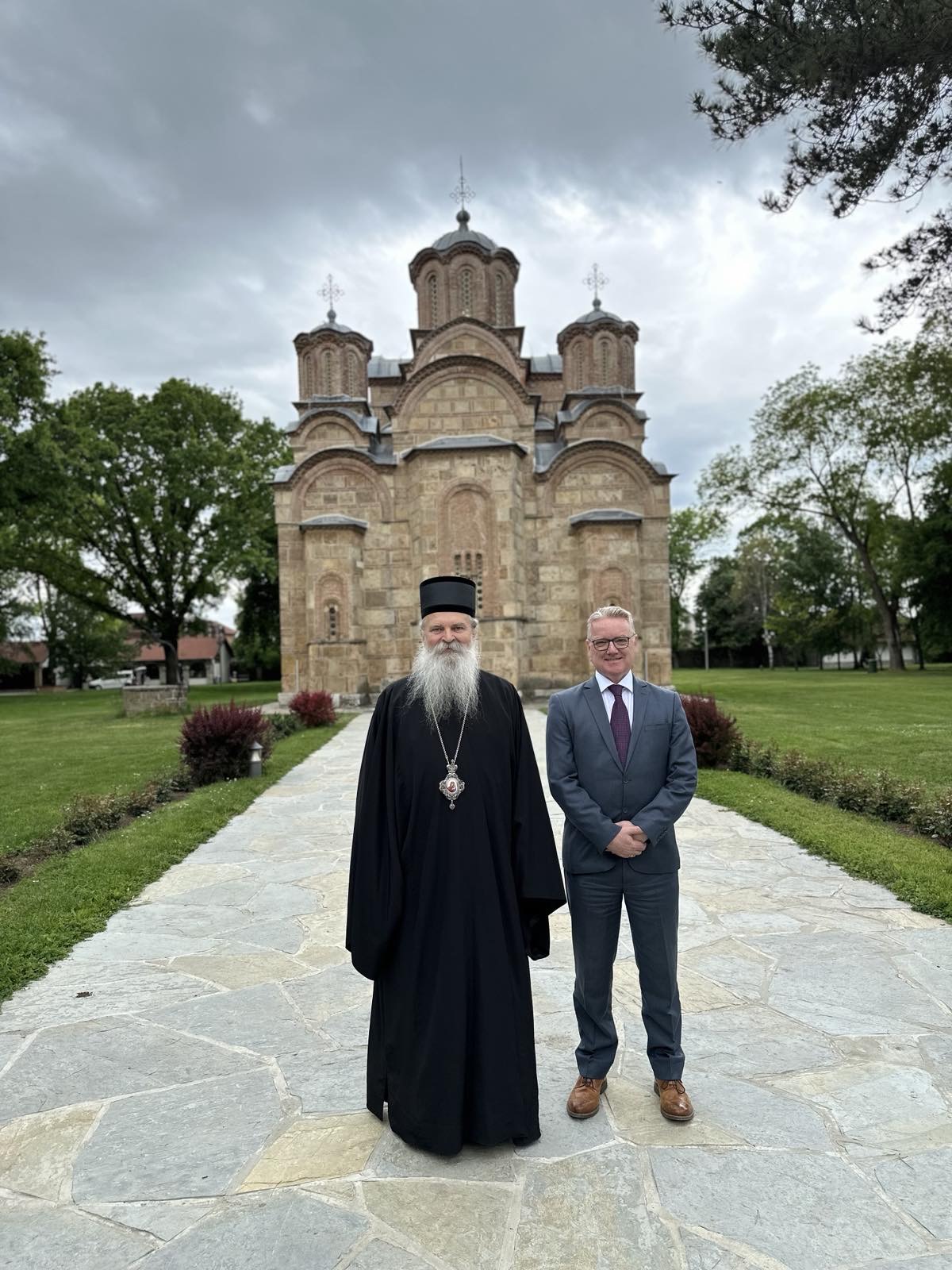 Његово Високопреосвештенство Митрополит рашко-призренски г. Теодосије састао се данас у манастиру Грачаница са новоименованим шефом Мисије ОЕБС-а на Косову, амбасадором Џерардом Мекгарком.
