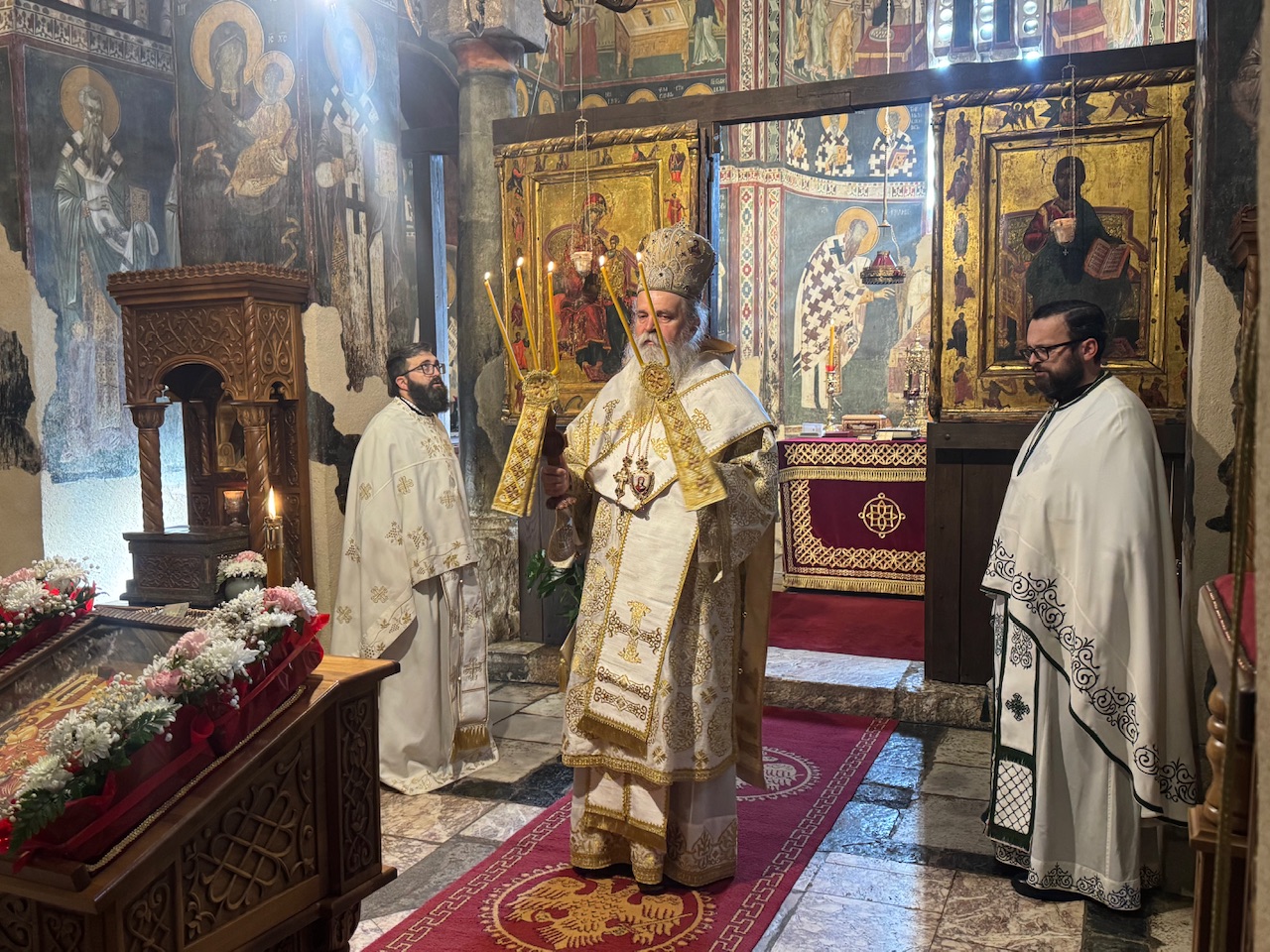 Светом Литургијом началствовао је Његово високопреосвештенство Митрополит рашко-призренски г. Теодосије, уз саслужење протојереја Дарка Маринковића, јереја Јована Светловића и ђакона Братислава Богдановића.