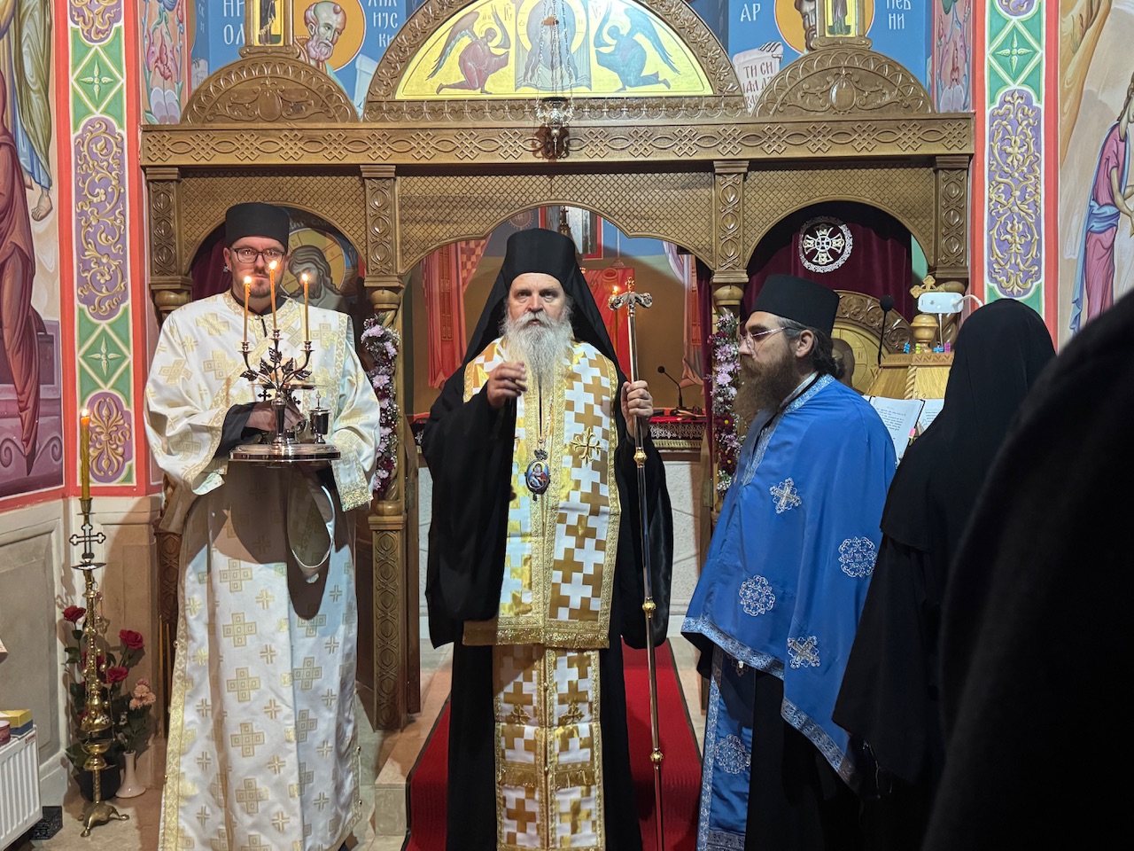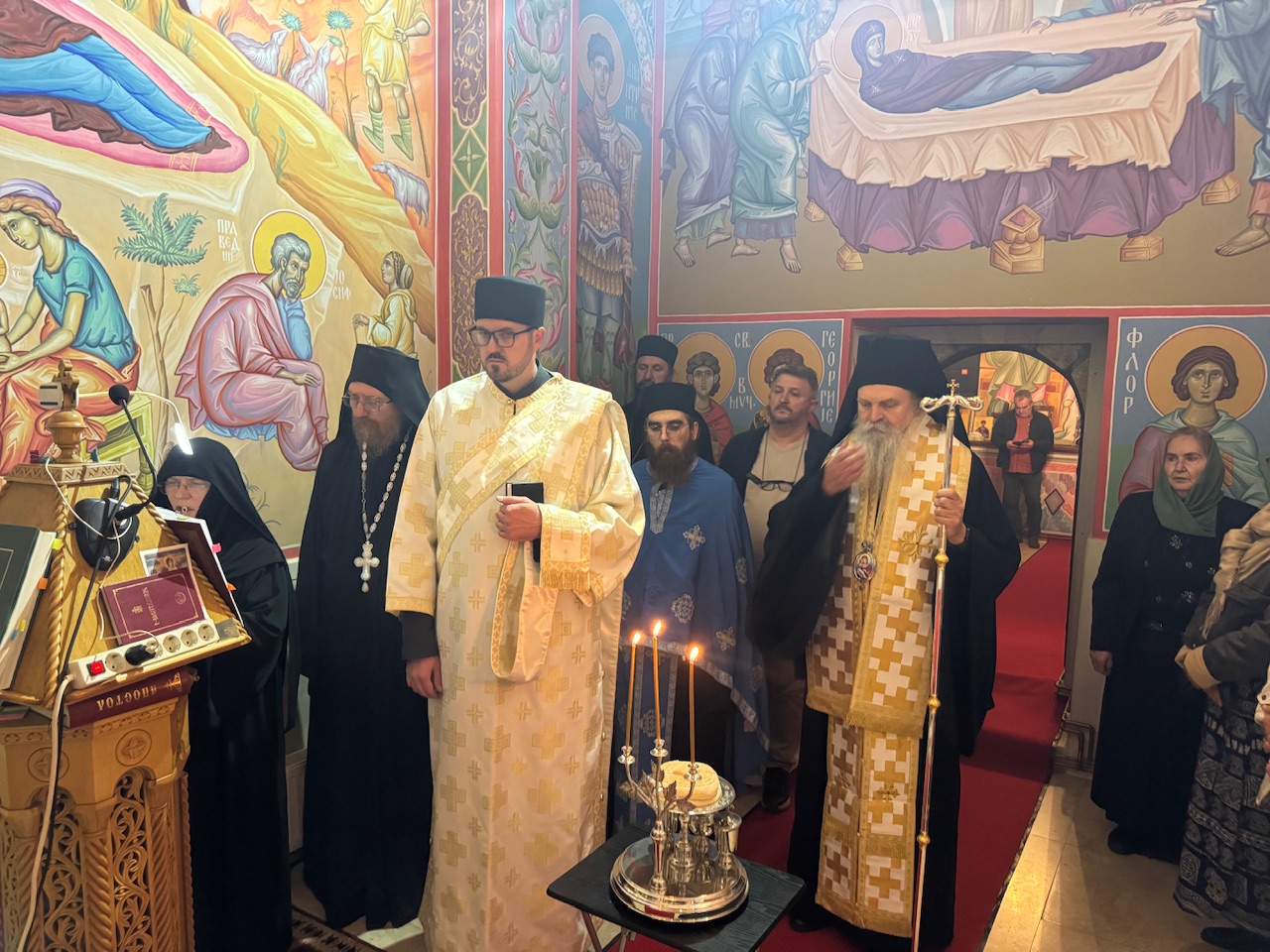 По завршетку вечерњег богослужења, Митрополит Теодосије је игуманији мати Ирини и сестри Христини честитао славу манастира, пожелевши им духовну снагу и благослов Божији у њиховом монашком подвигу.