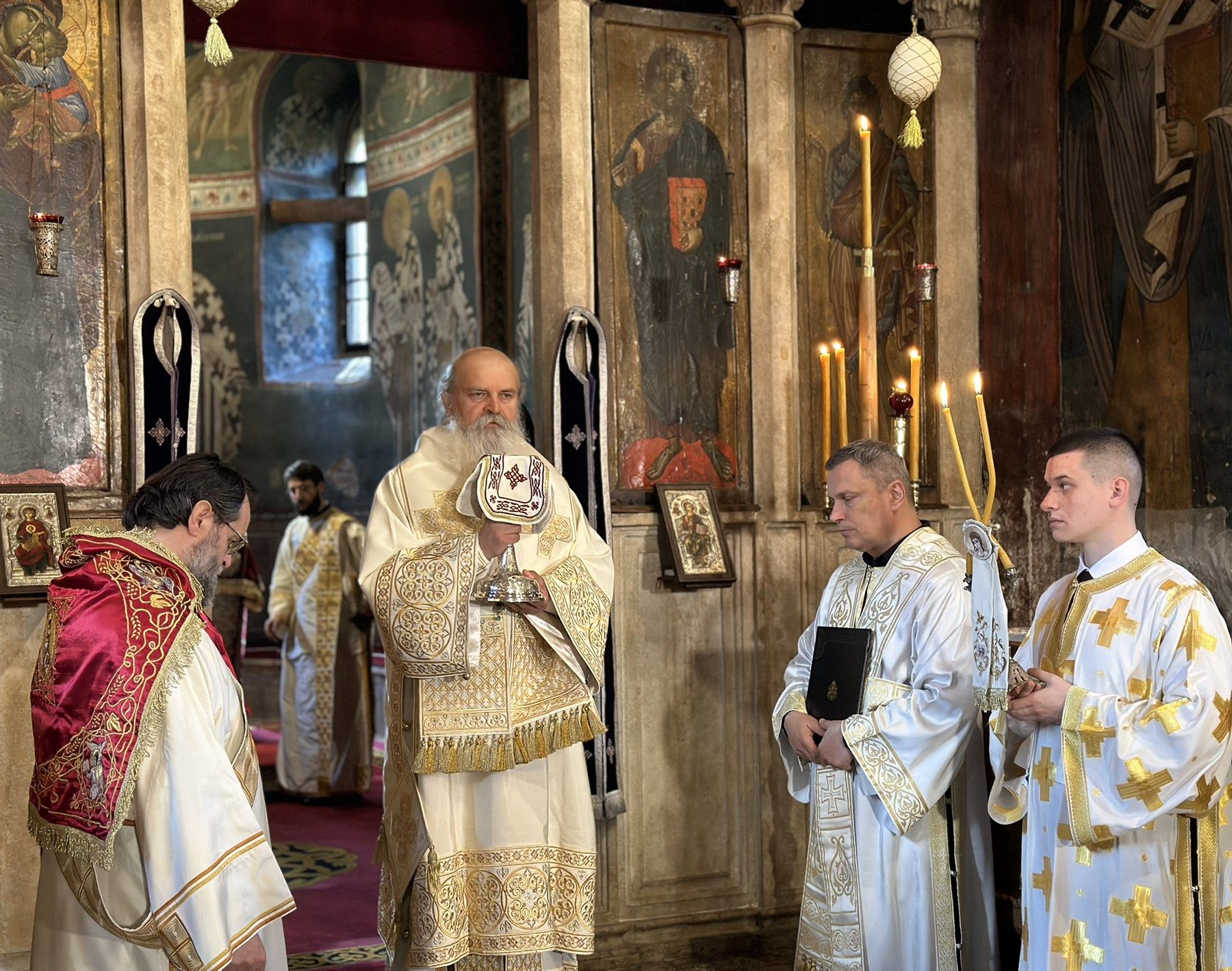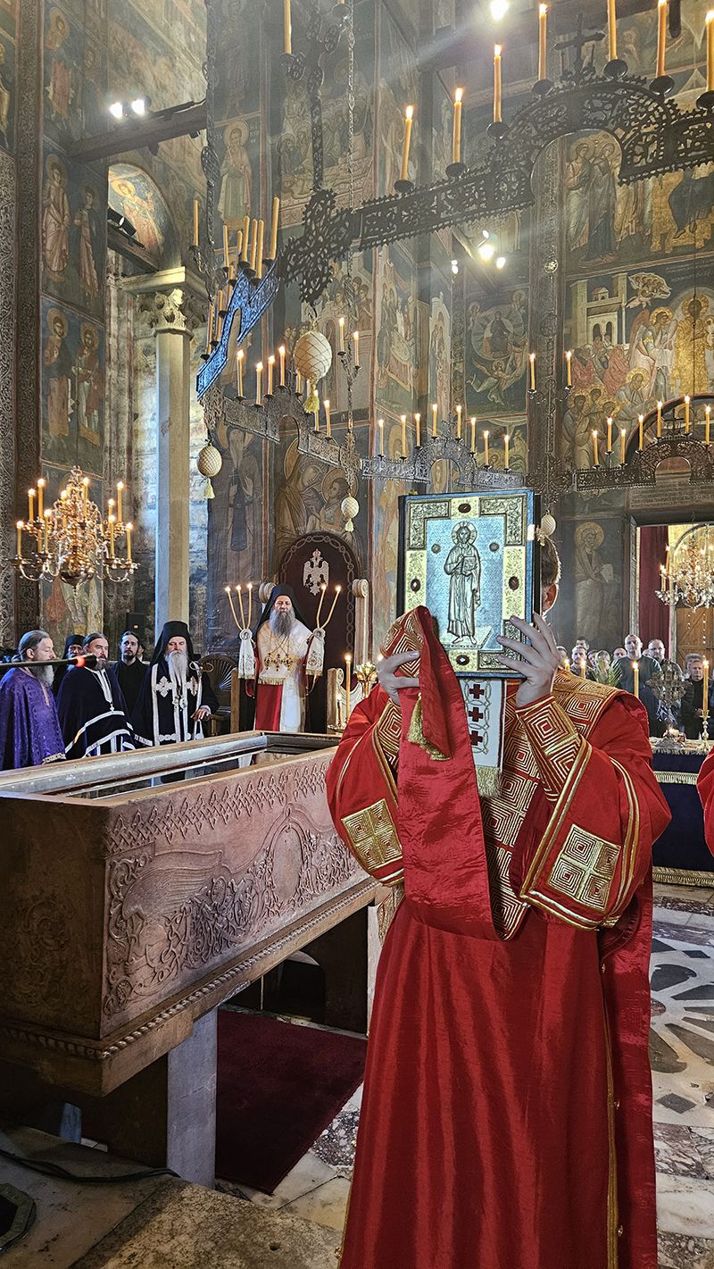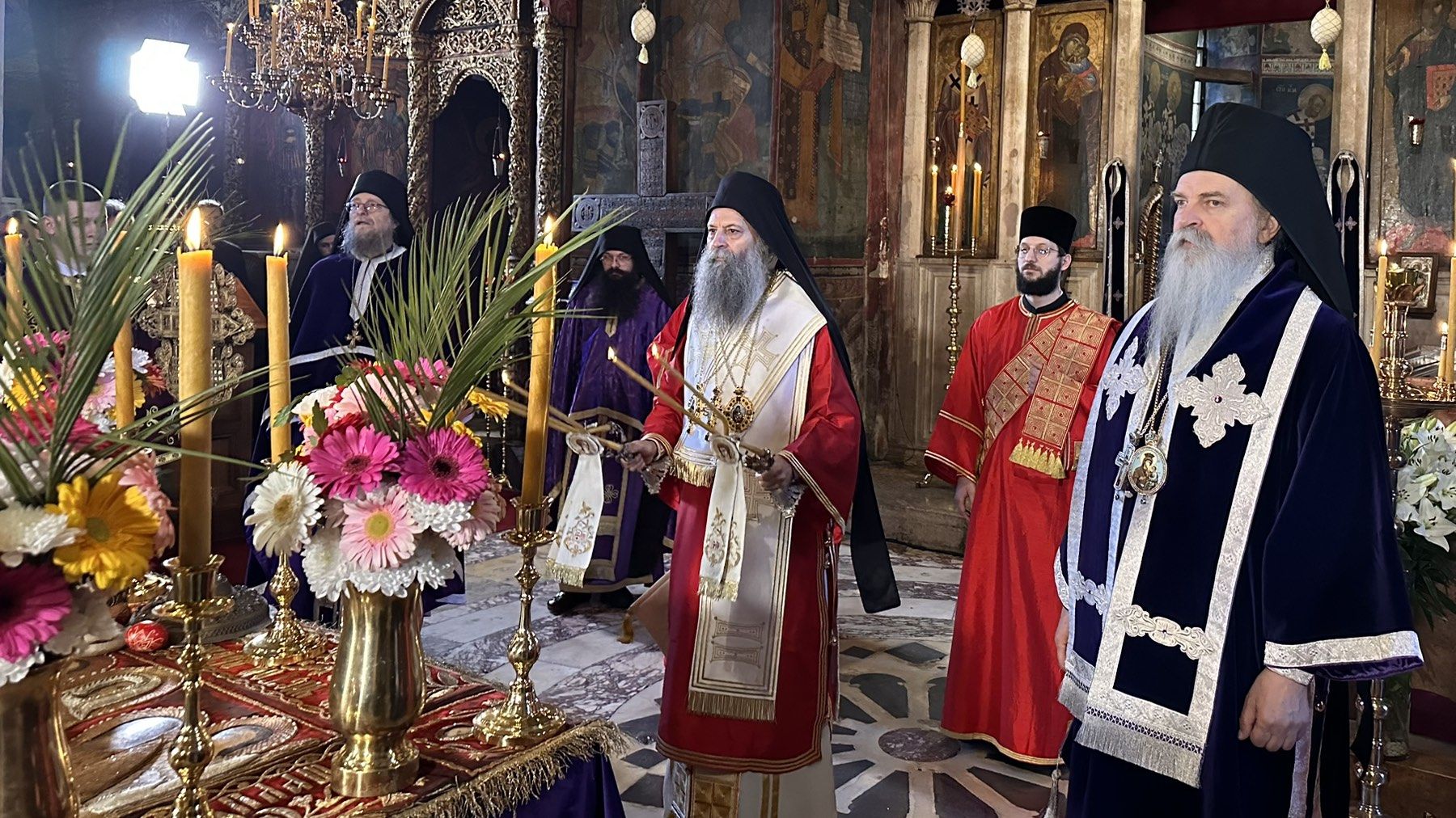 Другог дана посете Косову и Метохији, 19. априла 2025. године, на Велику суботу, Његова Светост Патријарх српски г. Порфирије је служио свету Литургију у манастиру Високи Дечани.