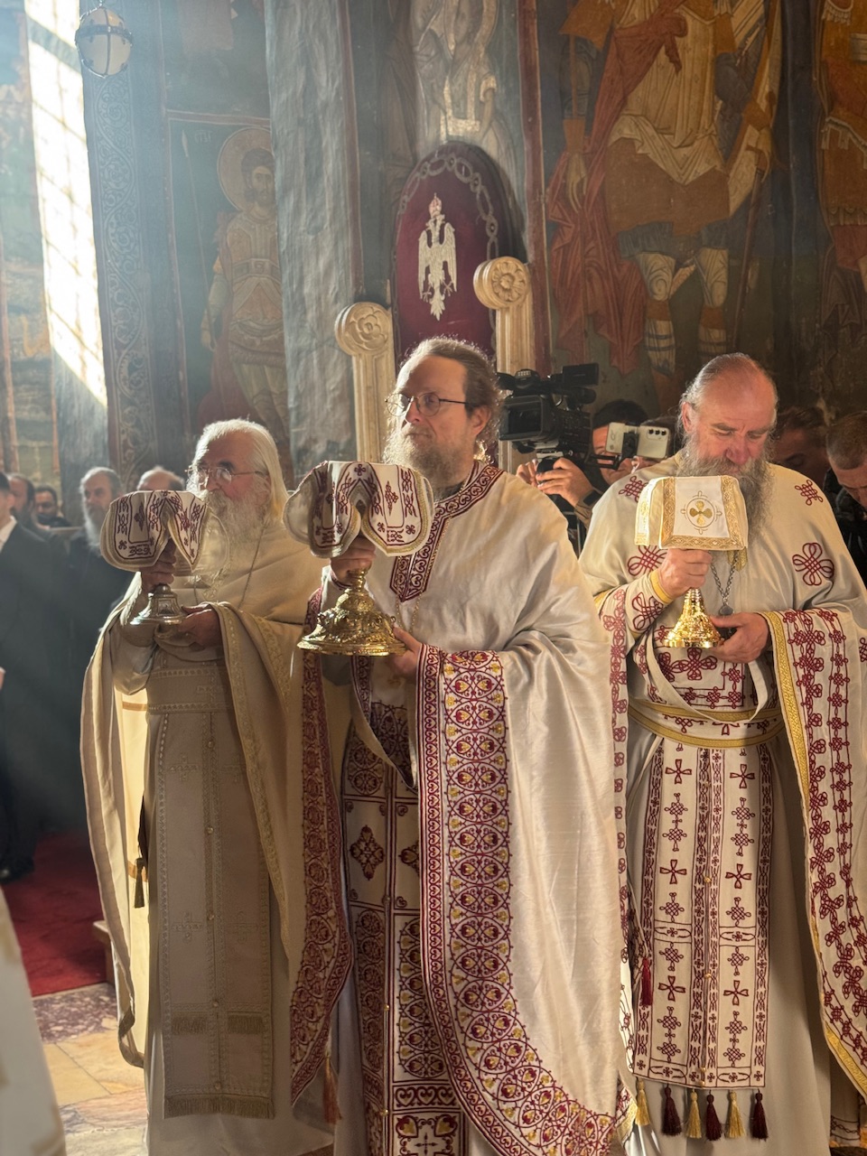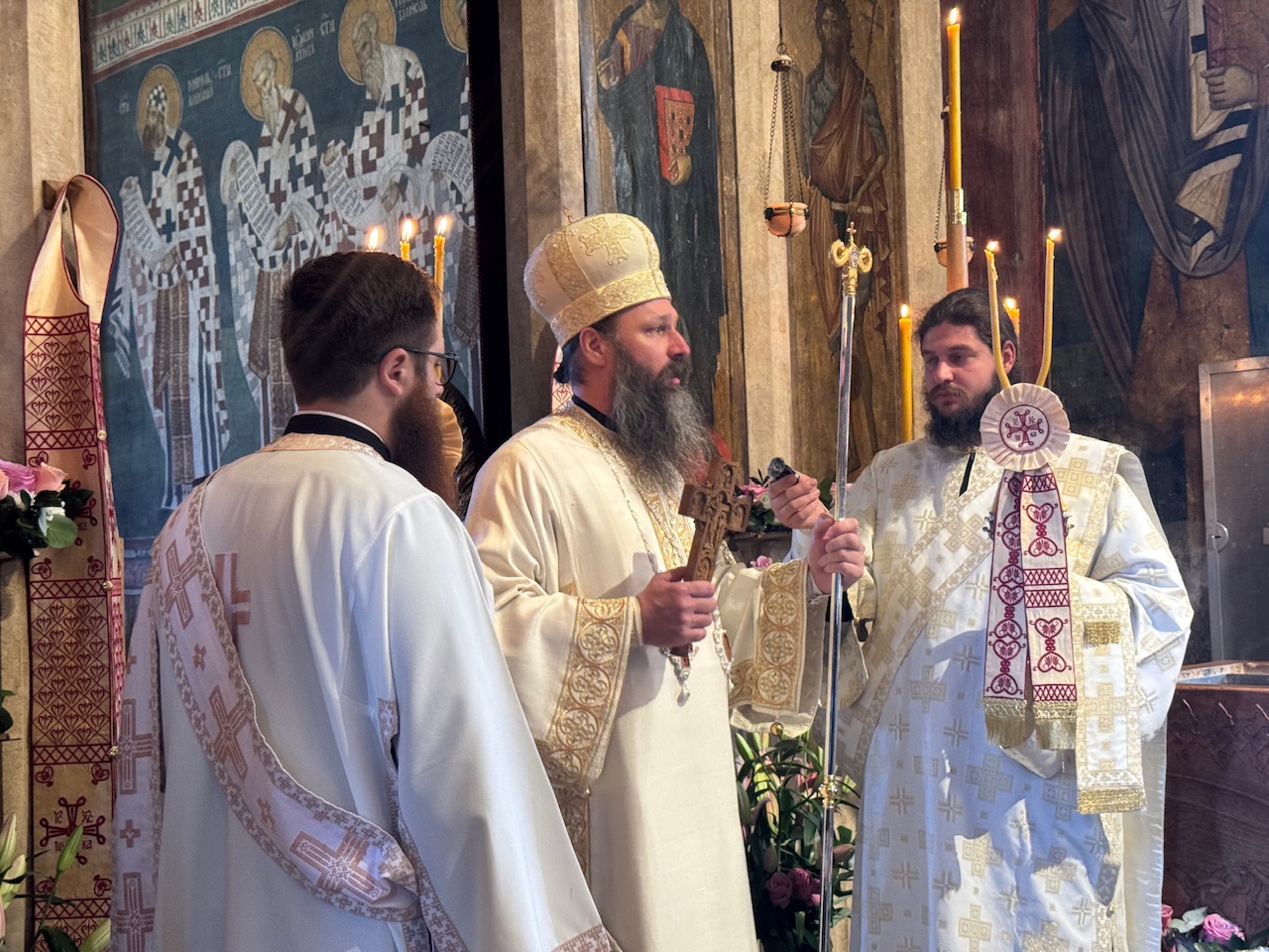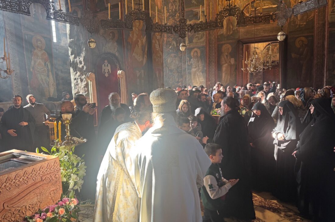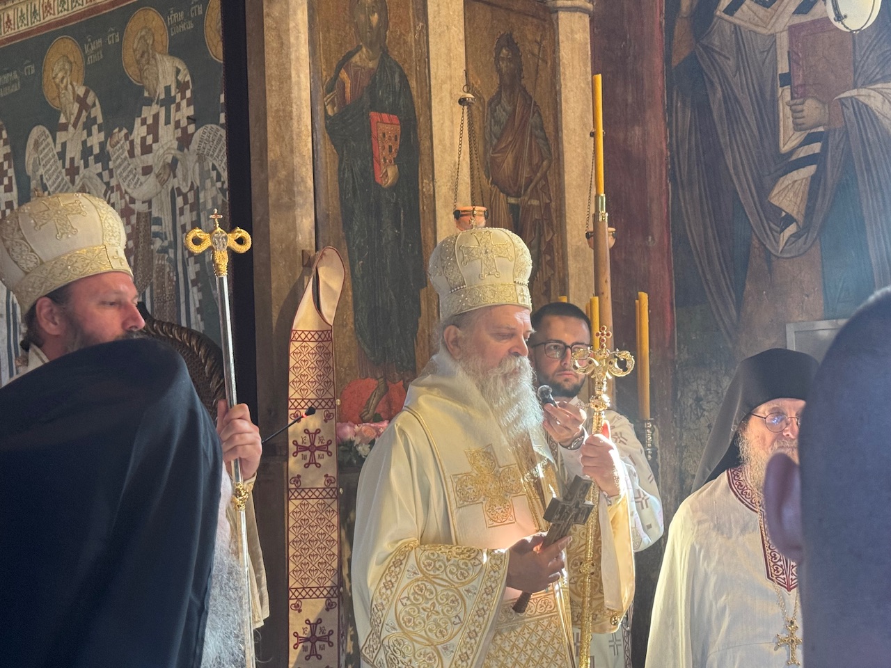 У литургијској беседи Епископ Иларион пренео је благослове и поздраве Његове Светости Патријарха српског г. Порфирија, који се управо у овој светињи замонашио.