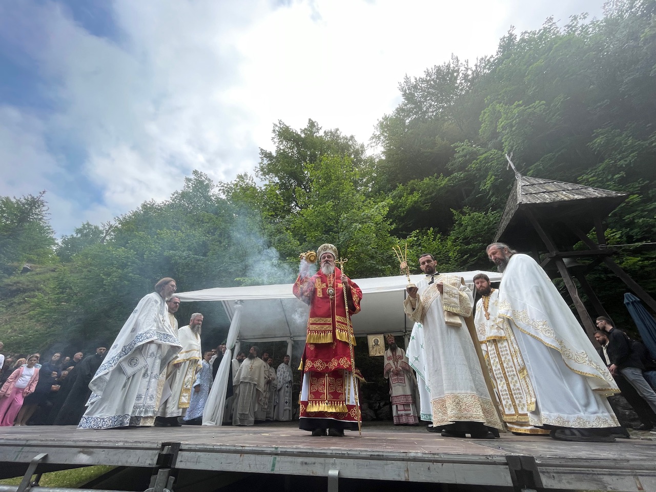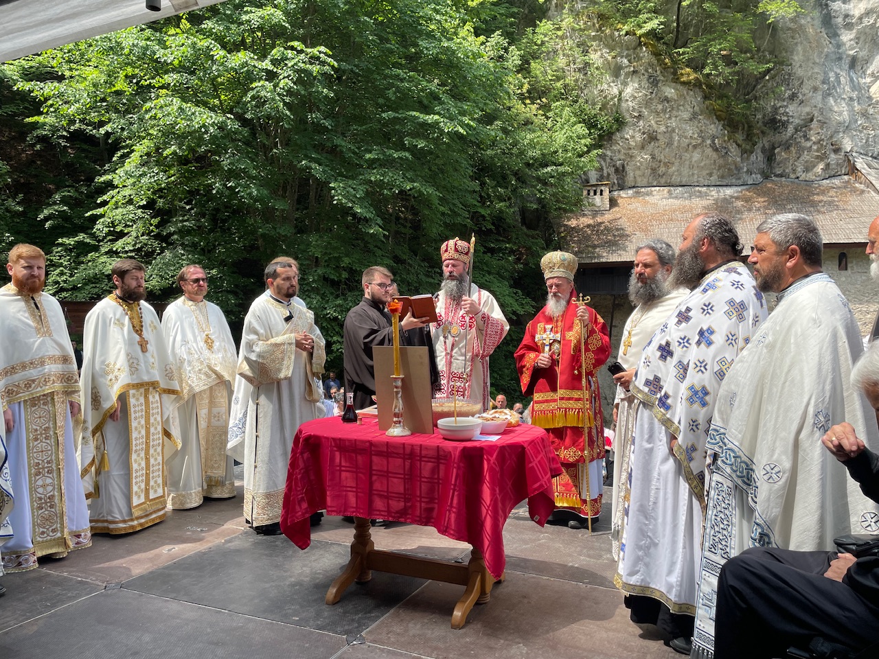 „Данас смо крај моштију Светог Петра, али смо спречени да посетимо његово место подвига, јер неки иду тамо не ради молитве, већ ради изградње путева који не воде у Царство Небеско. Помолимо се да и та света одаја, место његовог подвига, поново засија молитвом и светошћу.”