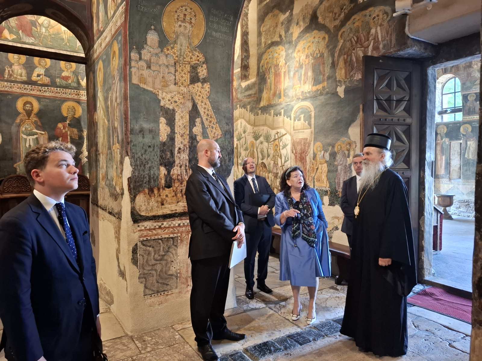 Током обиласка цркве, Митрополит је изасланицу Пирс упознао са историјом и значајем ове средњовековне светиње, као и са духовним, културним и пастирским животом Цркве на Косову и Метохији.