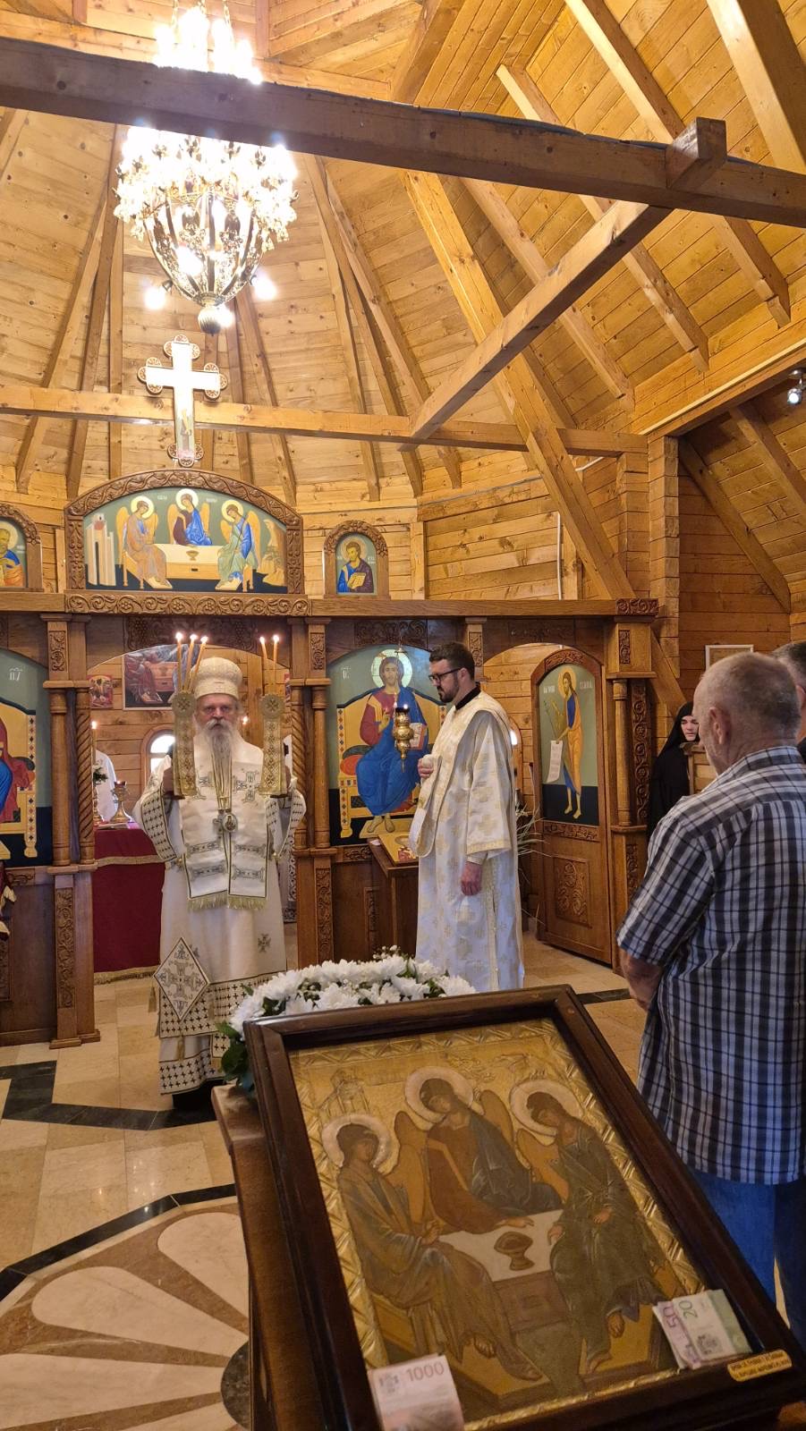 На празник Духовског понедељка, 9. јуна 2025. године, Његово Високопреосвештенство Митрополит рашко-призренски г. Теодосије служио је свету Архијерејску Литургију у храму Свете Тројице у селу Кућани, надомак Рашке.