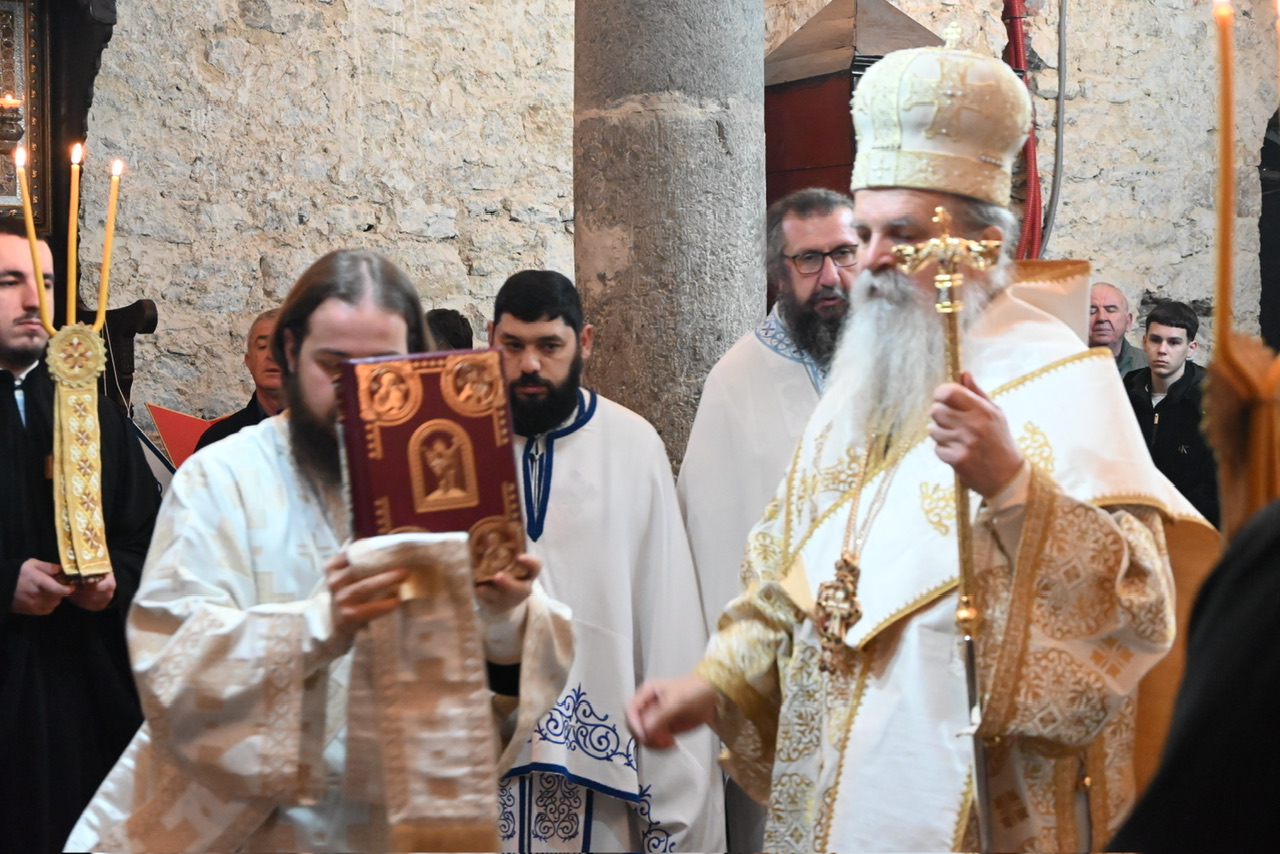 Подсетивши на установљење закона о приношењу првенца после избављења Израиља из Египта, Митрополит је говорио и о сусрету старца Симеона са Христом: „Симеон Богопримац, коме је било обећано да неће умрети док не види Месију, дочекао је тај тренутак у храму. Узео је Богомладенца у наручје и препознао у Њему Бога у људском телу.“