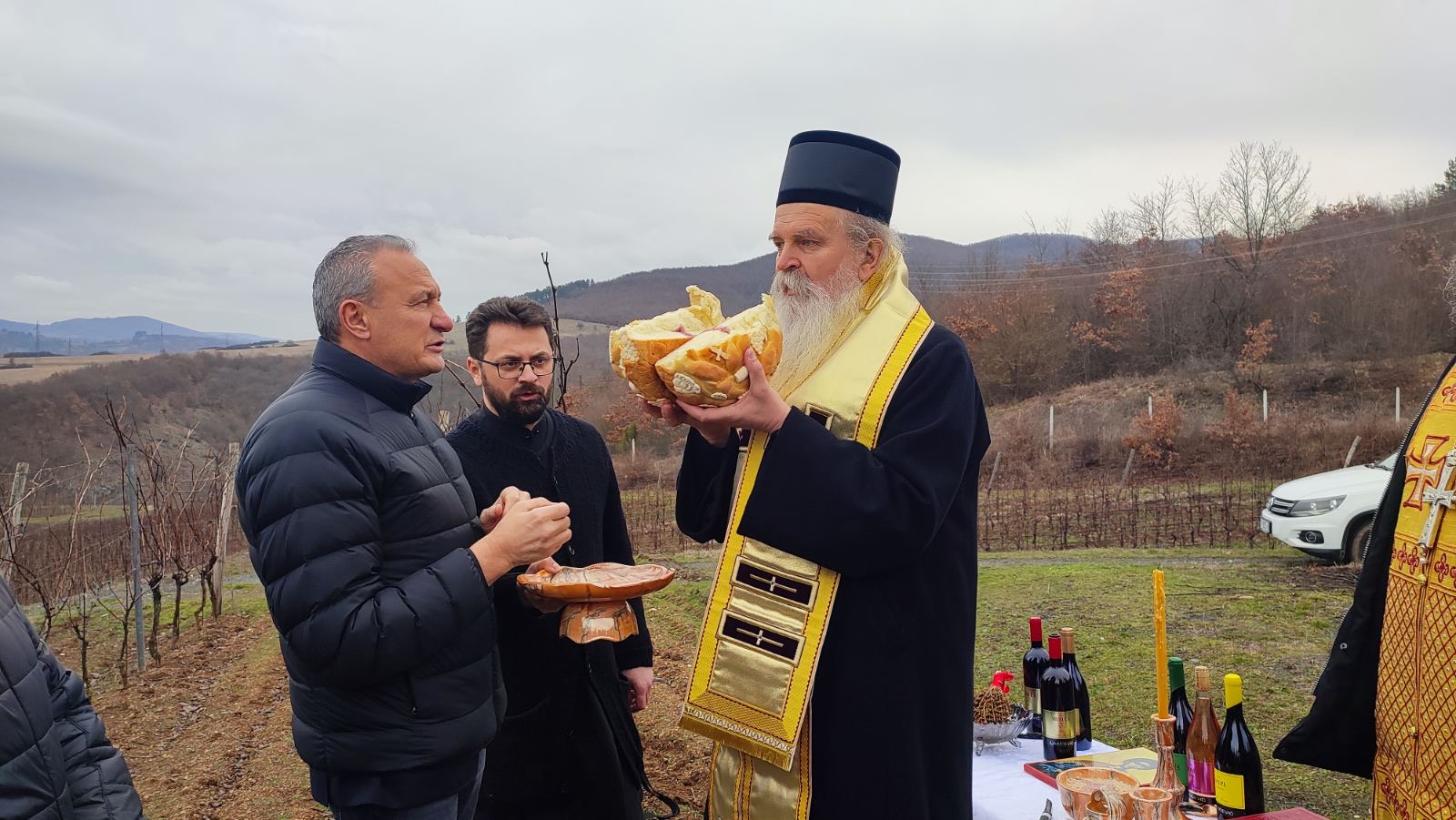 Након Свете Литургије, у винограду породице Лакићевић, Његово Високопреосвештенство Митрополит рашко-призренски г. Теодосије, у духу вековне традиције везане за празник Светог Трифуна, обишао је виноград и благословио почетак орезивања лозе, молећи се да Господ подари родну и благословену годину.